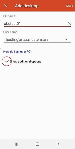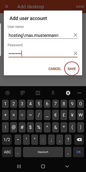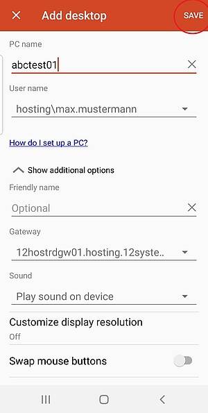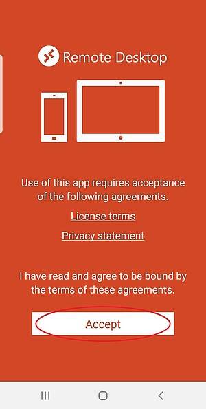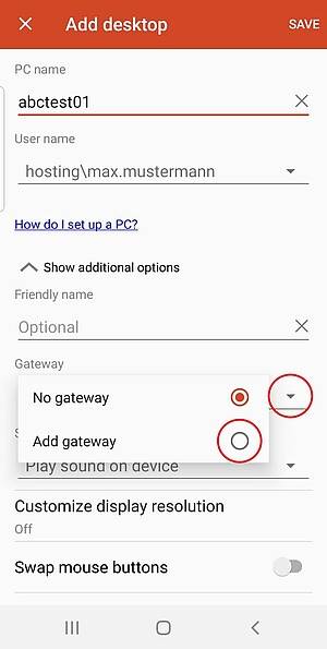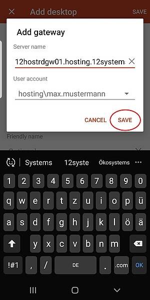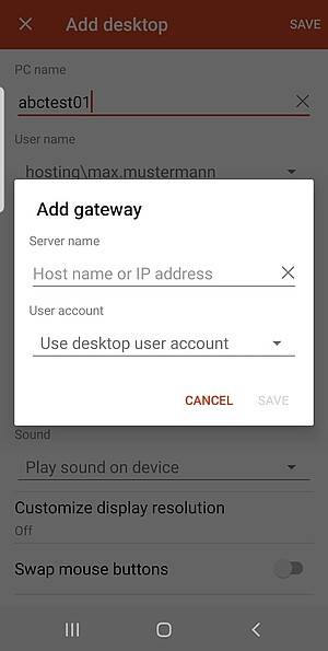 Anmeldung an den neuen Remotedesktop-Gatewayserver über Smartphone: